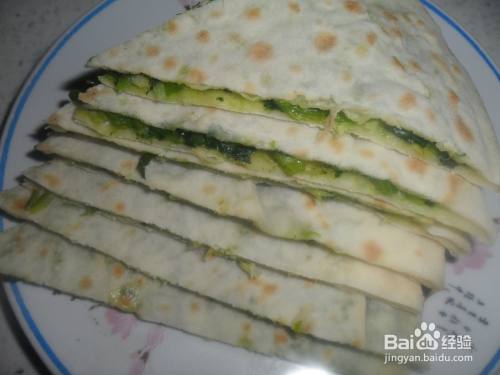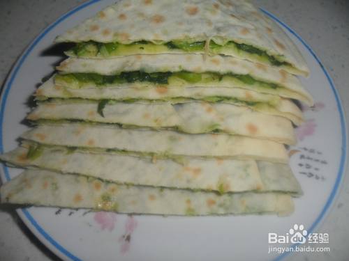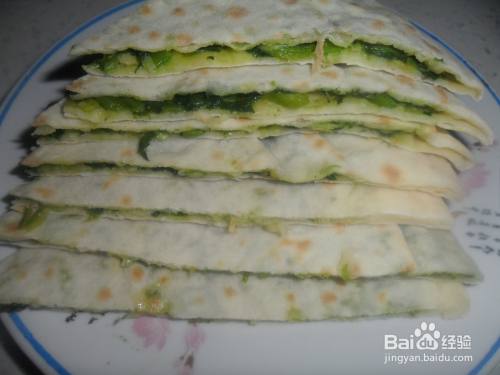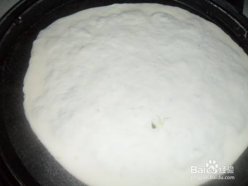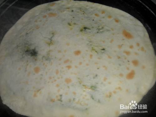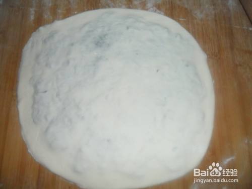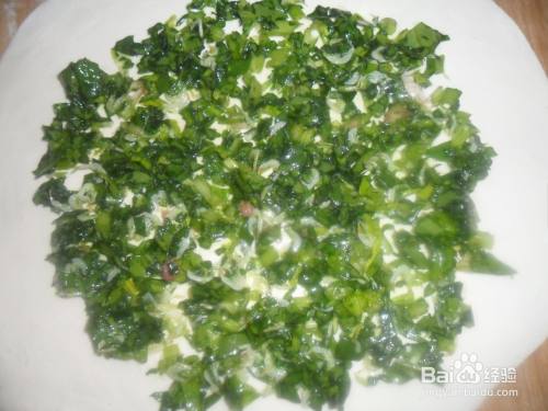擀成圆面饼,放上菠菜馅儿,在上面再盖上一张圆面饼。