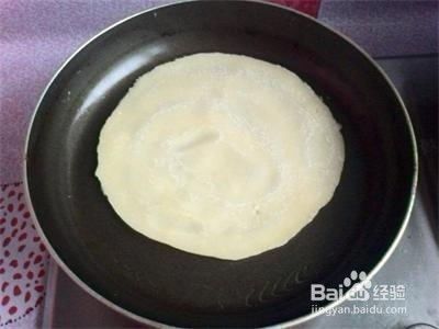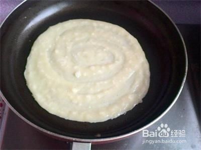 平底不粘锅,不用放油(放油会不成型),放入适量面糊。