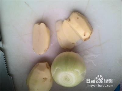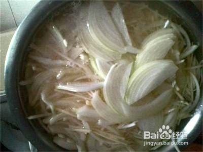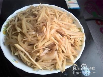 土豆、洋葱去皮洗净切丝后用水泡一会,然后控干。