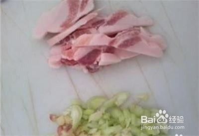 葱姜切碎,猪肉切条。