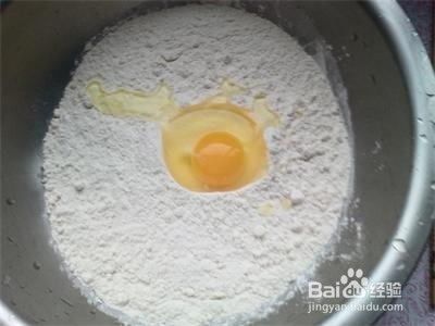 先做面饼。取适量面粉,打一个鸡蛋。