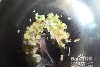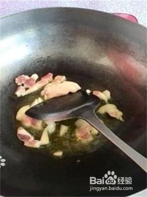 起锅放油,等油热放猪肉大火煸炒,炒出香味后放葱姜,继续煸炒。