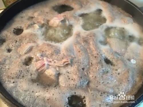 羊蝎子焯水,焯水的羊蝎子会出很多的血沫子。