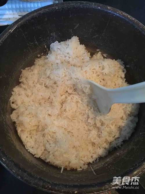 3煮好的糯米饭,用饭勺打散,备用。