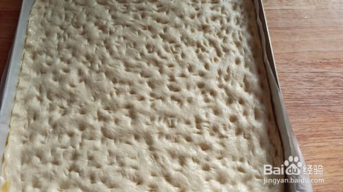 直接用手摊平在烤盘上,用手指头压出不规则洞洞。烤盘是28×28。