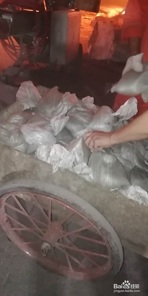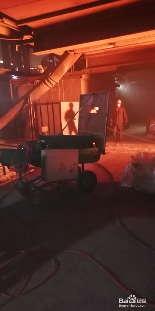 在投补之前,需要把投补料每袋约3Kg扎紧,松紧适宜,尼龙袋质量要好,过紧投补料通过皮带时,容易挤破,现场演示投补机时,投补料刚出皮带,投补料就散袋,也有些投到炉口上,演示的效果不是很理想(如下图)。