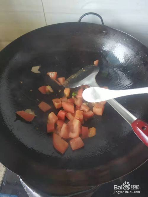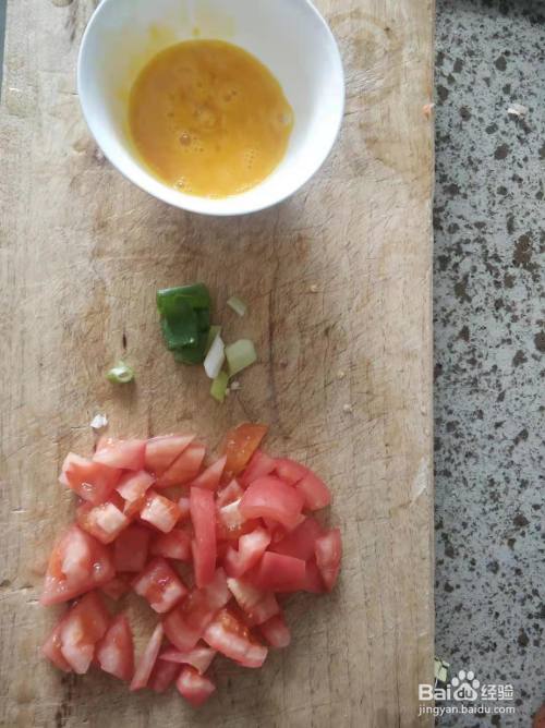 首先,将西红柿洗净切成小块,鸡蛋打散。