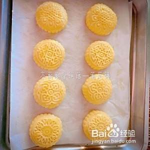 烤盘上铺上油纸,将南瓜饼放上去,表面刷油。