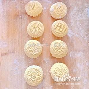 将面团分成同等的小剂子,然后裹上豆沙馅,放入模具定型。