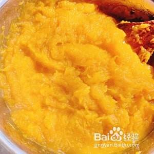 蒸好的南瓜捣成泥,冷却备用