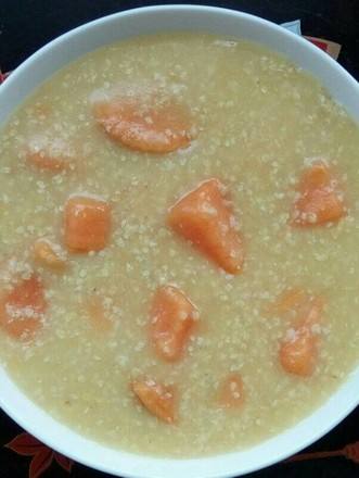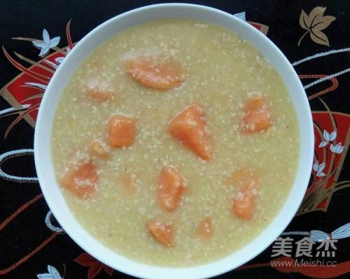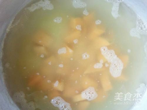 5锅中加入水烧开,下入洗净的米煮10分钟,然后加入地瓜。