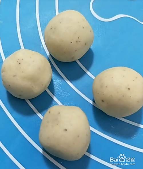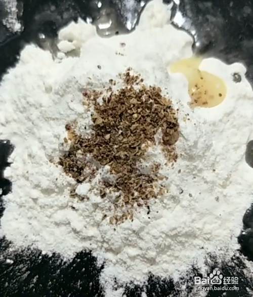 准备适量面粉,加油,盐,花椒粉,做成油酥面团,分成小剂子。