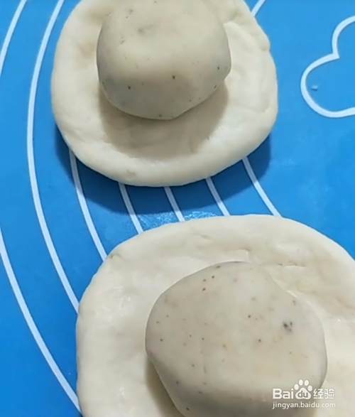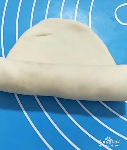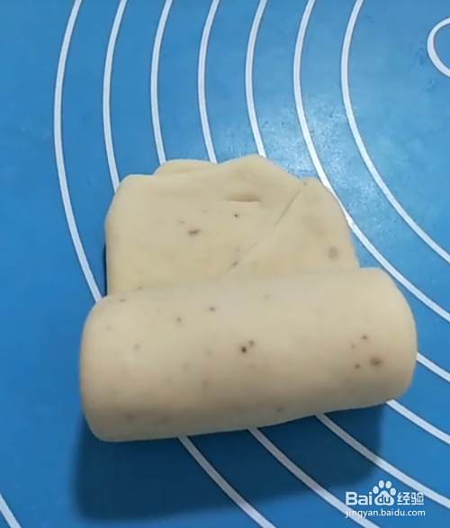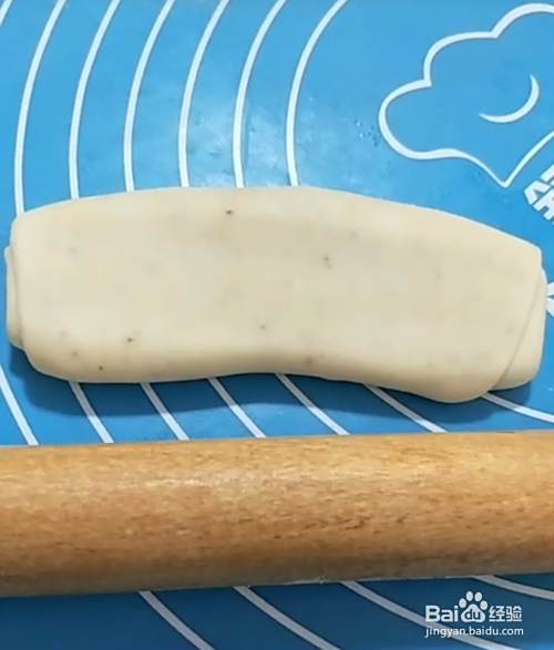 擀成长条,卷起,再次擀成长条状,再次卷起来,轻轻按成圆形。