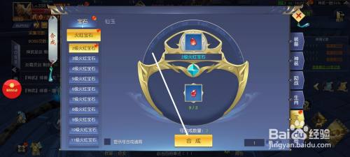 选择所要合成宝石的等级,点击合成,完成以后,点击镶嵌即可完成装备。