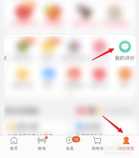 打开手机淘宝应用,点击我的淘宝选项,选择我的评价的图标。
