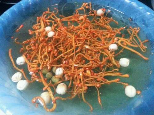 3虫草花和莲子用清水洗净,浸泡五分钟。