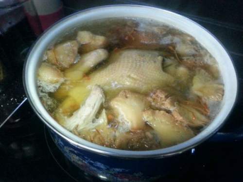 9熬制鸡汤最好用砂锅,放入姜片,葱节后,先大火10分钟烧开,用勺子撇去白色浮末后,再转小火 ,烧开的程度应该掌握在似开非开的状态。