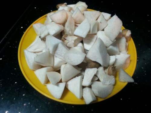 4鸡腿菇洗净后切块备用。