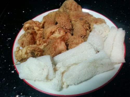 1猴头菇提前三小时泡发,最好用淘米水。待菇体膨胀后,反复挤压,用清水洗净,勤换水,去除猴头菇黄色杂质。