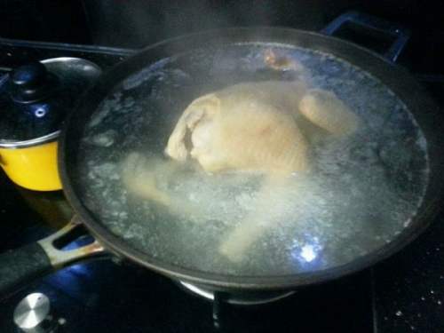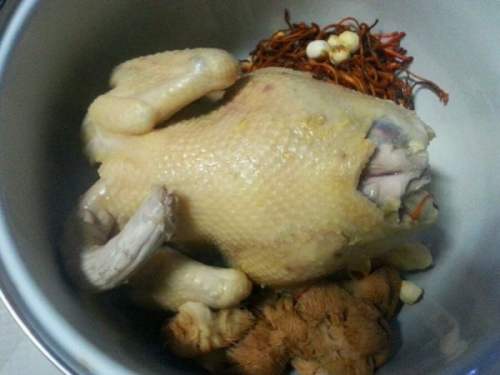 7为了确保炖出的汤清凉而不浑浊,鲜香而无异味,需首先对整鸡进行飞水。不宜冷水下锅,整鸡最适宜在温水时下锅,加入少许料酒,然后煮七到八分钟, 在煮的过程中,适时地翻动整鸡。