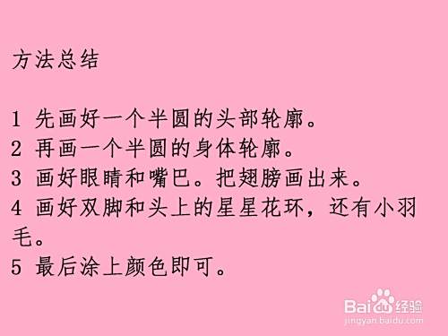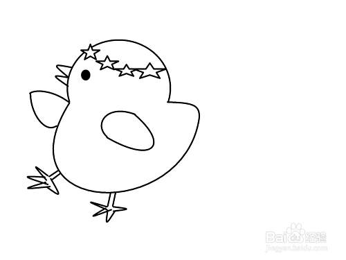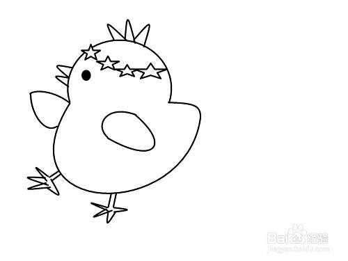 4 画好双脚和头上的星星花环,还有小羽毛。