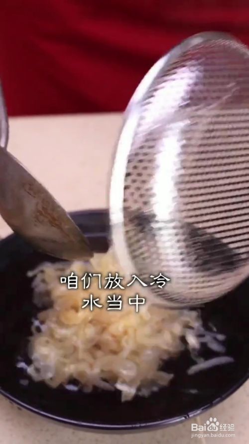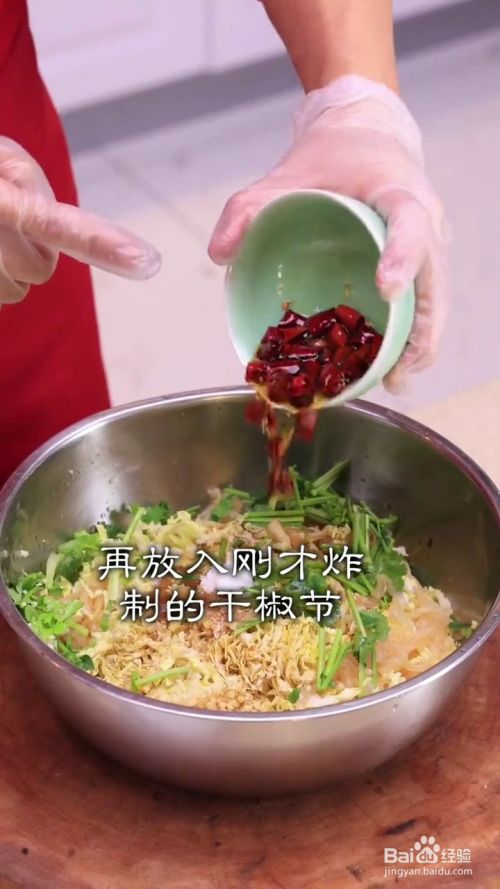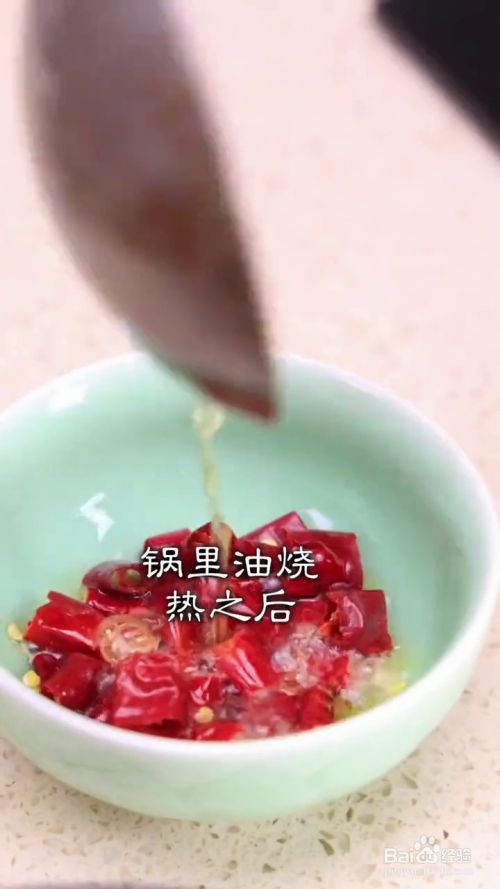 接着将海蜇捞出过凉水,冷却后控干水分和白菜丝放在一起,在一个碗中放入适量干辣椒,烧热油浇在上面,激出香味备用