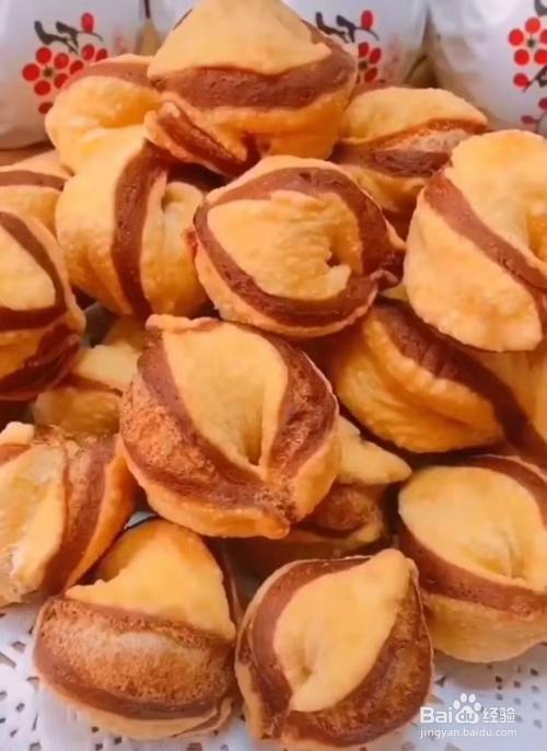 所需材料:第一种面团(鸡蛋2个、白糖80克、食用油50克、小苏打2克、面粉300克、)
