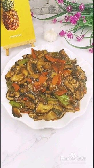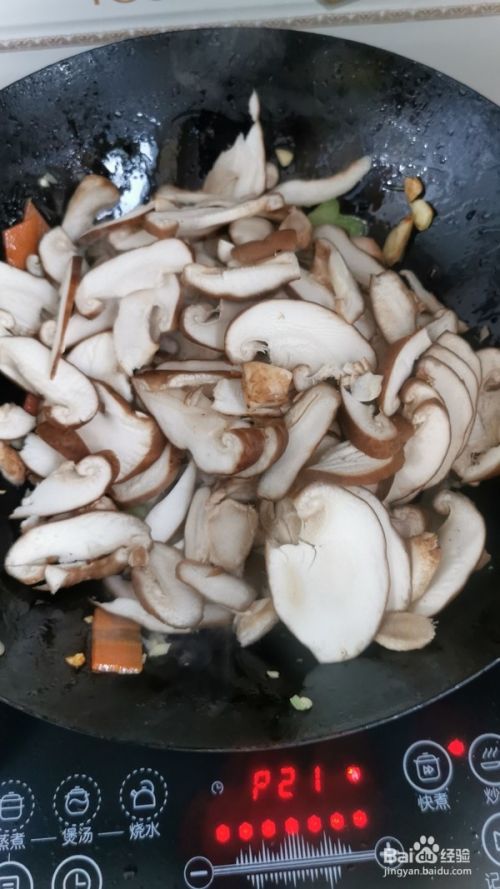 香菇放入锅中炒软。