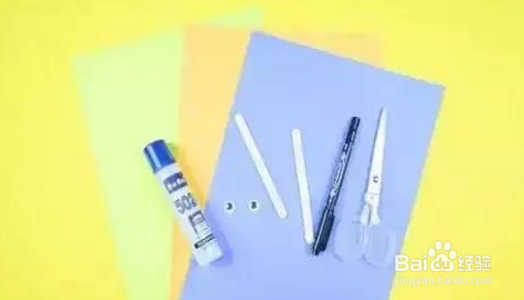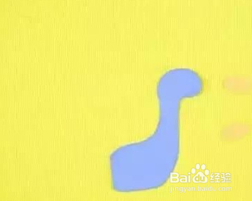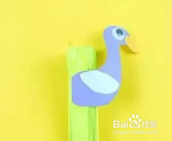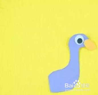 用浅蓝色的纸剪下孔雀的头,用橙色的纸剪下孔雀的嘴,粘在眼睛上