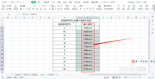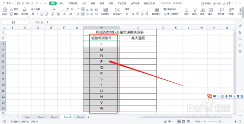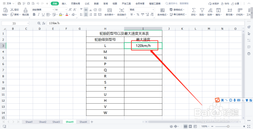 首先,在表格中建立“轮胎的型号以及最大速度关系表”