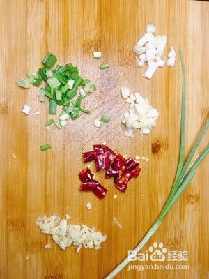 蒜和姜切末,干辣椒切段,葱切小段,把葱白分开备用。