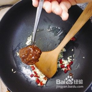 热火放入图中的油量,把葱白和姜末蒜末,干辣椒放入锅中炒香。葱花留着备用。