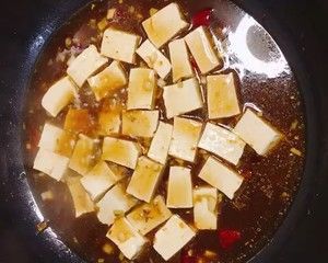 倒入一碗清水。把豆腐放入锅中,盖上盖子大火烧3分钟。