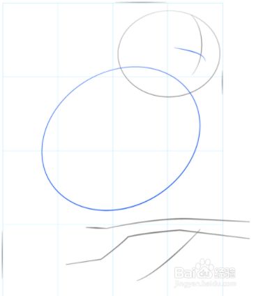 为身体描绘椭圆形。用一条线定义眼睛的位置。