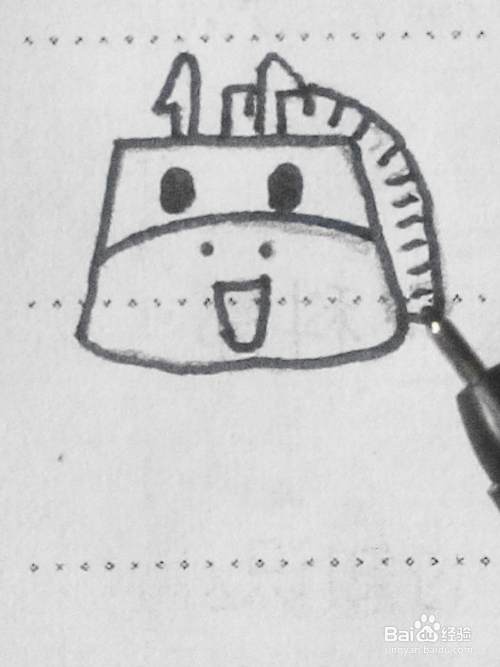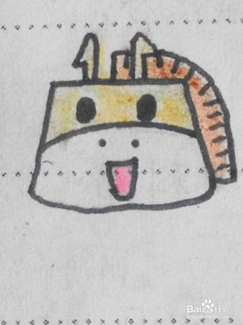 用棕色彩铅涂出毛发的颜色,再用金黄色彩铅涂出小马的脸的颜色,最后再用粉红色彩铅涂出嘴巴的颜色。