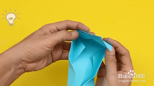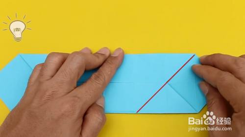 我们先按照这个边折叠一些,打开又折叠另一个边。