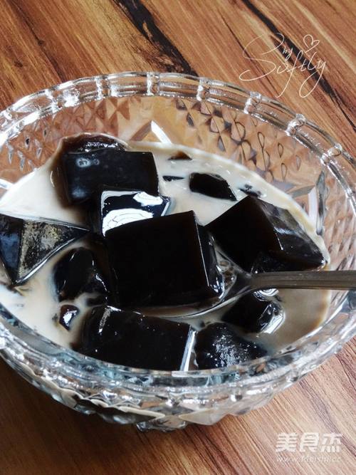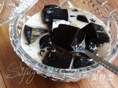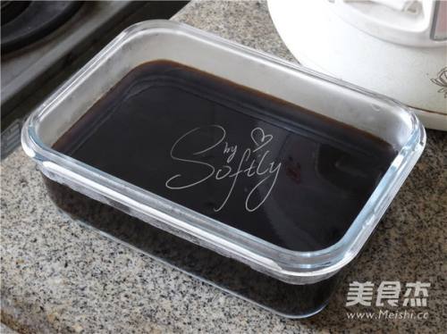 4将煮好的龟苓膏液体倒入适合的容器中,冷却直到凝固即可,如果想要冰凉口感可以放冰箱里面冷藏凝固。