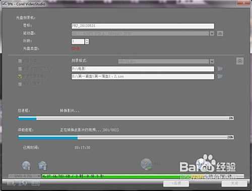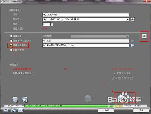 插入电影后,很显然已超出一个光盘的容量4.7G,这时就点击小箭头指圆框内齿轮状图标,进行压缩设置