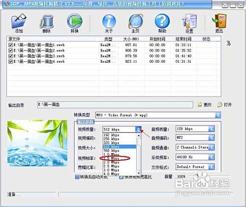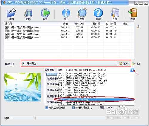 选中的视频全在“源文件”里了,接着选择“输出目录”,在后面可更改目录,比如还是“第一滴血”这个目录,再点击“转换类型”双三角下拉式菜单,选取“MPG-Video Format”格式
