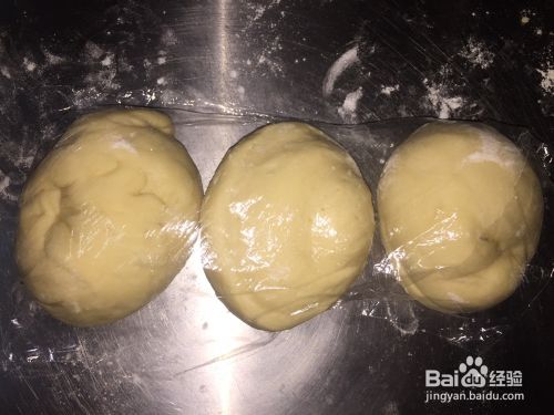 盖上塑料薄膜,放松20分钟。这一步是把面团擀好。如果你不放松,面团很有弹性,不容易滚动。
