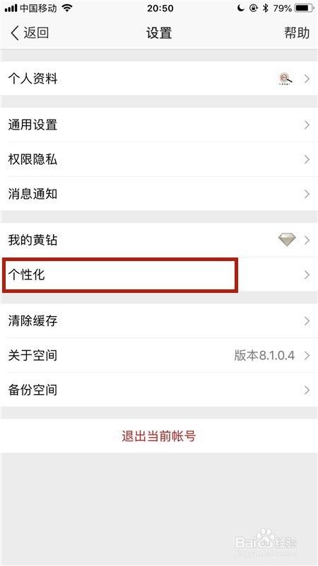 然后点击个性化,如下图所示。