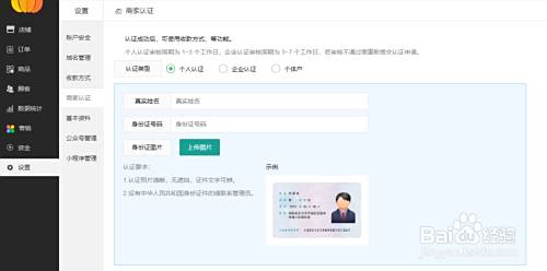 进行商家认证,可以选择个人认证,也可以选择企业认证