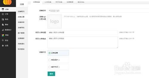 进入店铺后台设置,店铺名称、店铺LOGO、店铺客服即可