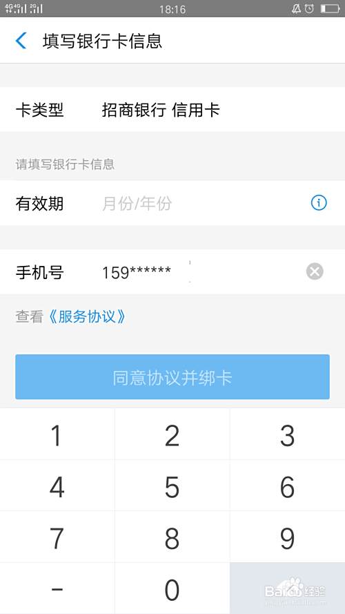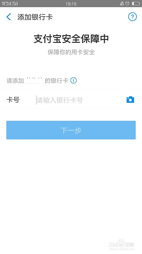 点击支付宝,进入到支付宝的添加银行卡界面,如图