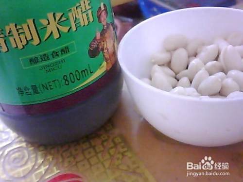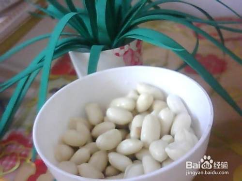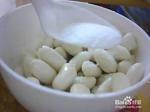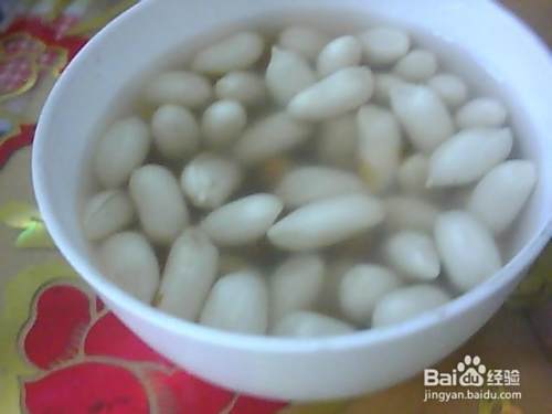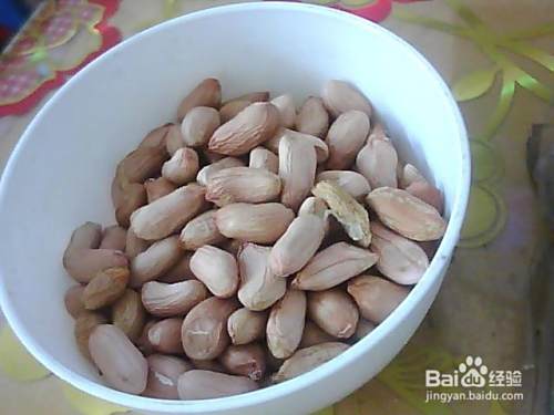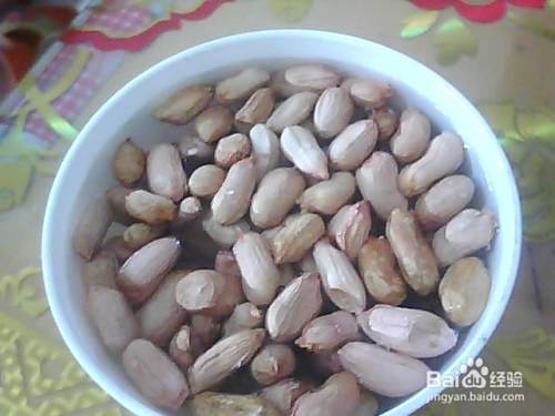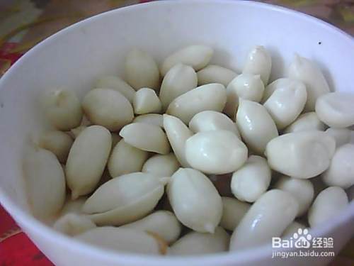 先把剥好的花生仁放进碗里。
