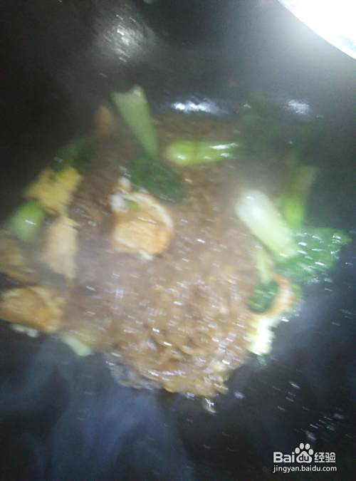 水烧干后,加5g油,再进行翻炒一下,关火,再加味精盛起来。