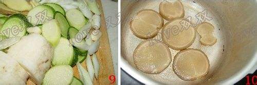 蔬菜全部切厚片,约1厘米厚即可,葱切段。(图9)