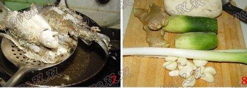 大火先烧开,将其浮沫撇掉,然后转文火,慢慢炖,根据鱼的大小决定时间,我大约用了3小时。