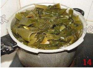 海带浸泡,洗净备用。人家放的是大块的海带,卷起来的,吃的时候再切开,我家没有,只有用海带结代替了。(图5)