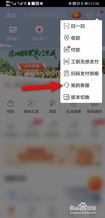 以中国工商银行为例,登录进入中国工商银行,点击右上角,再点击我的客服。